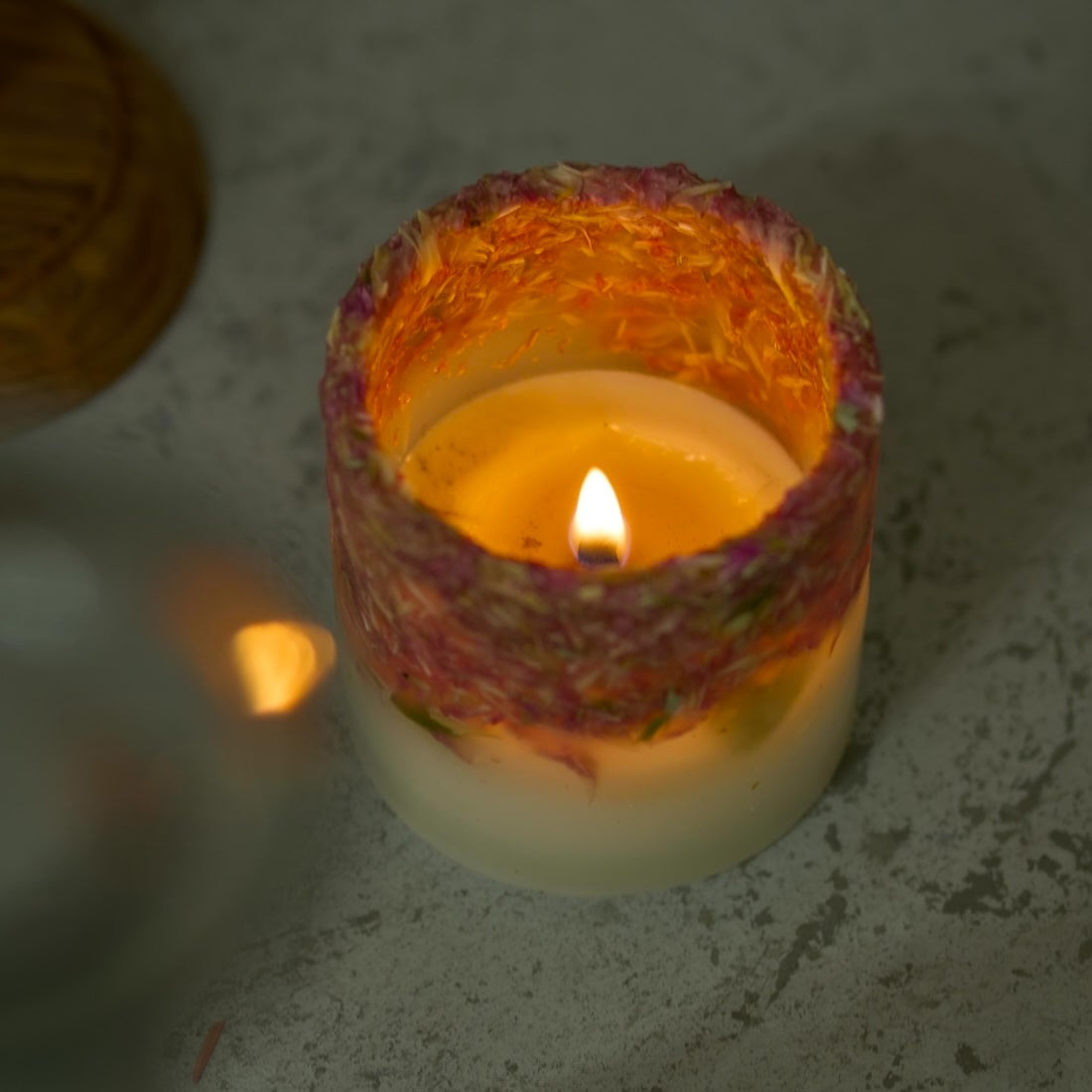 そんなドライフラワーを原材料に、このキャンドルはお作りしています。