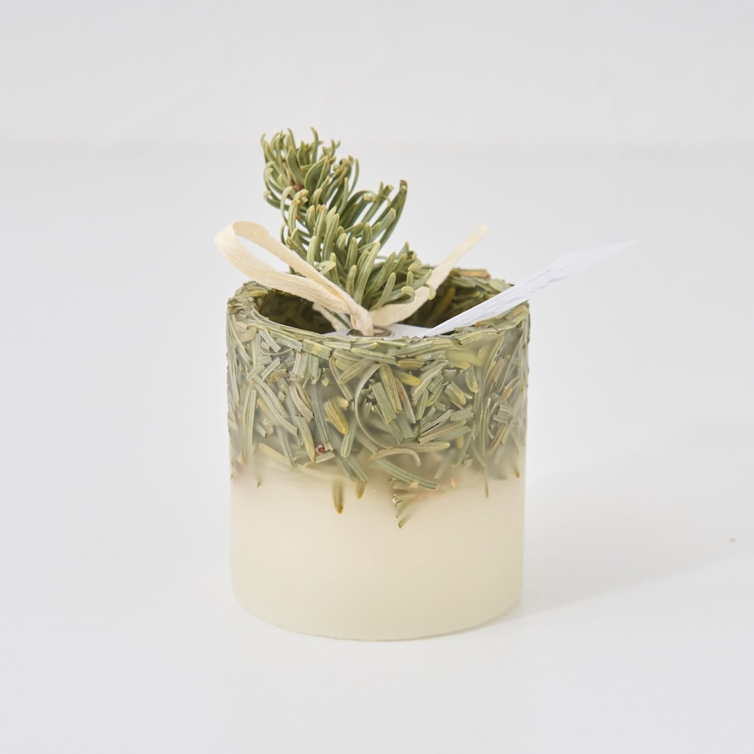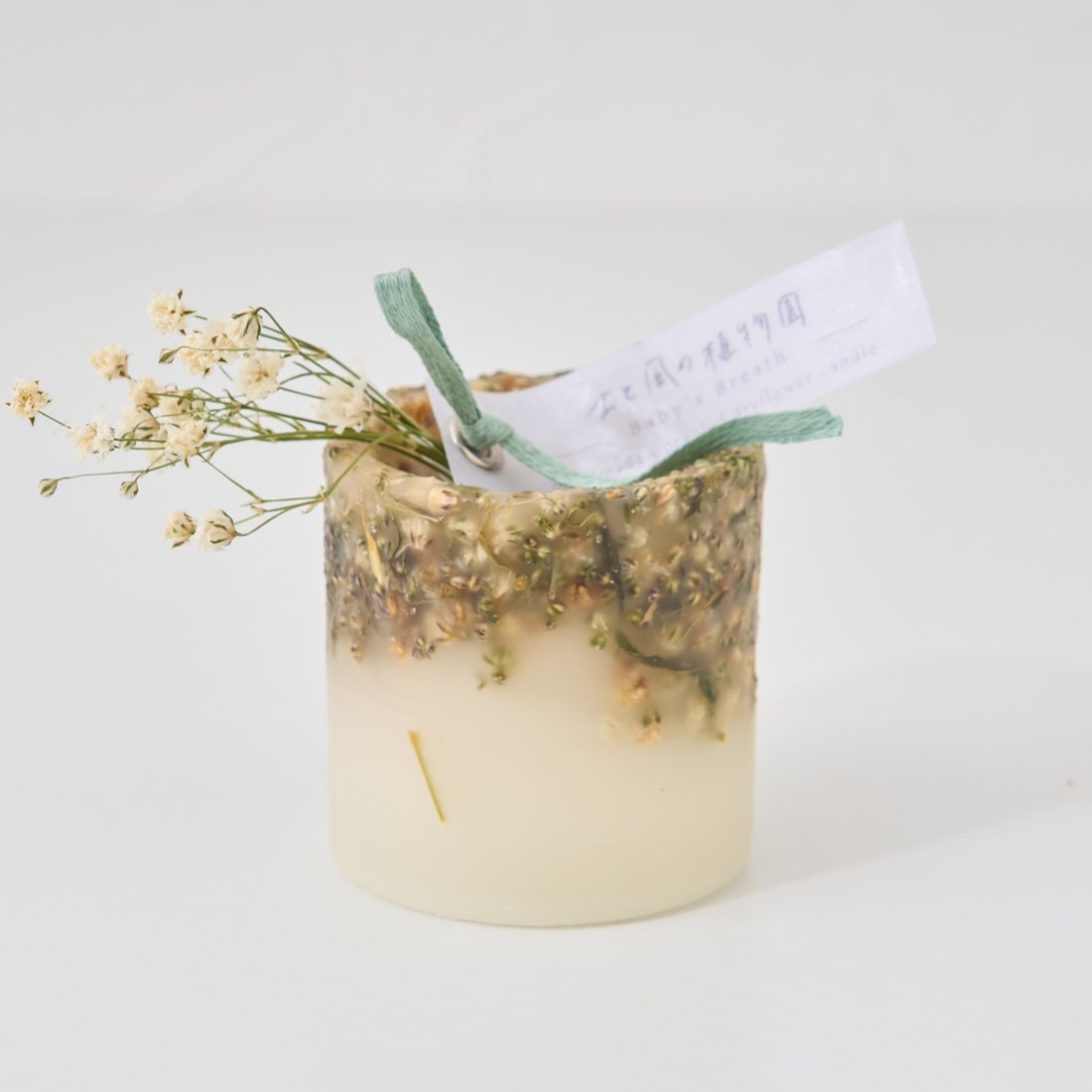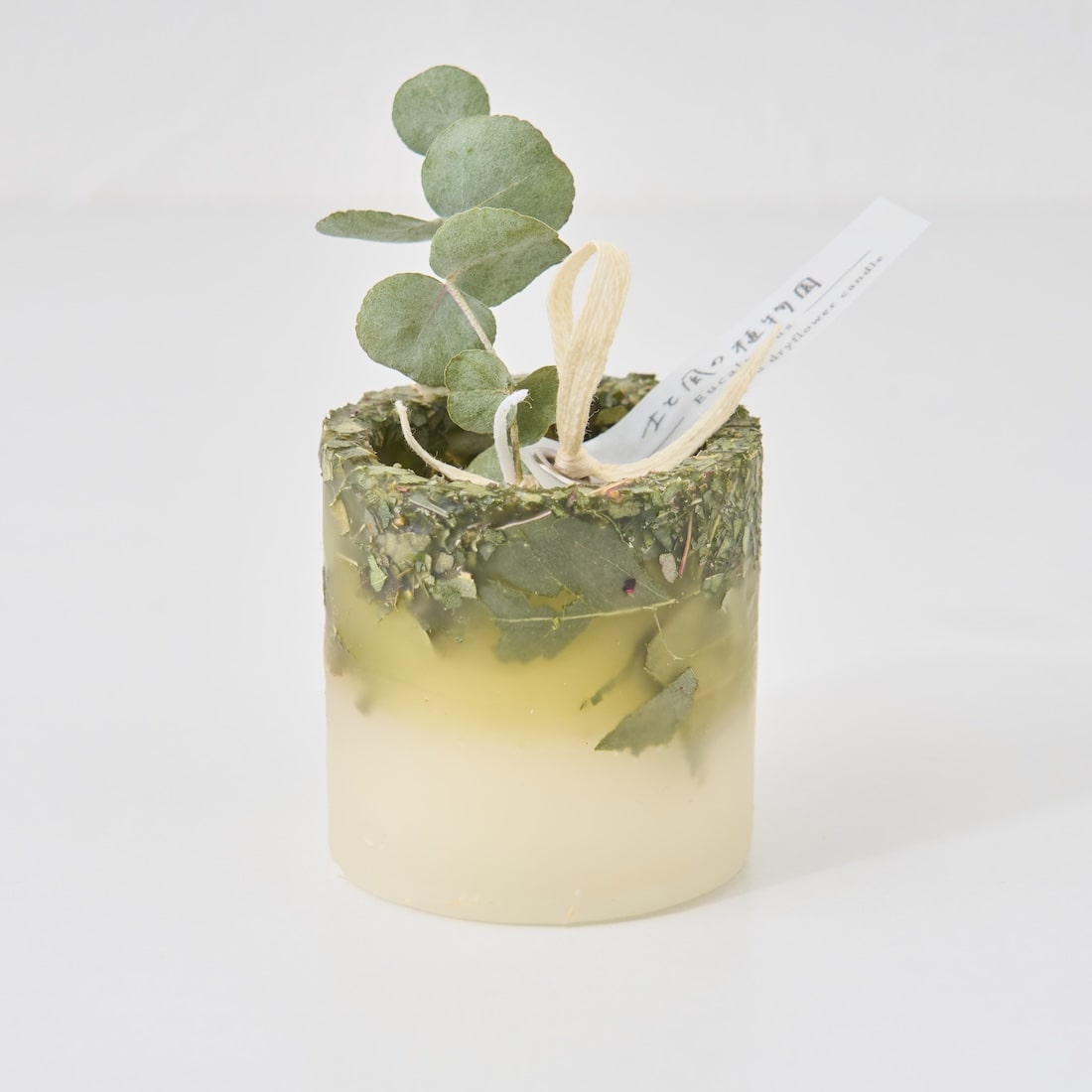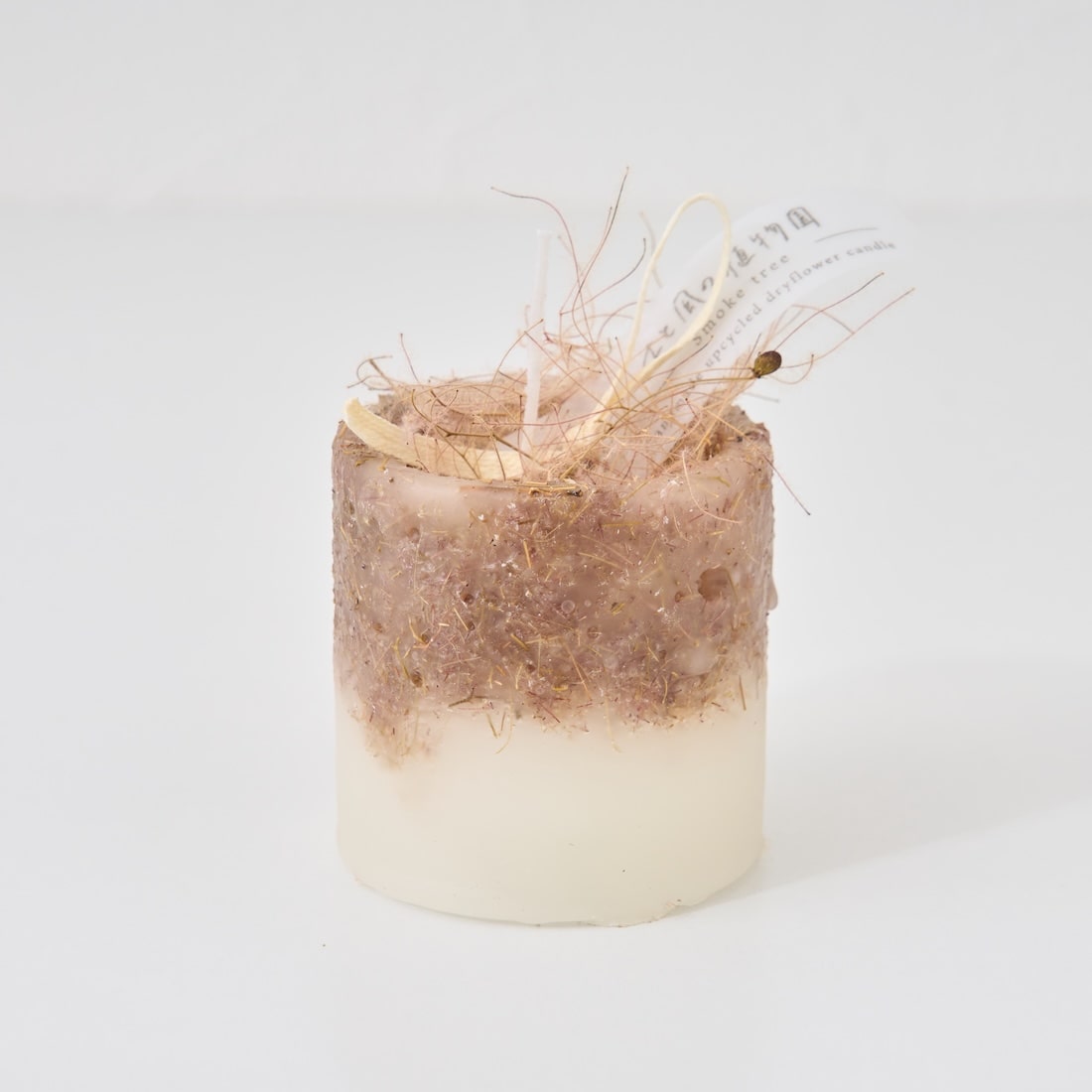 ドライフラワーのカケラをぎゅっと凝縮した、植物標本のようなミニキャンドルです。