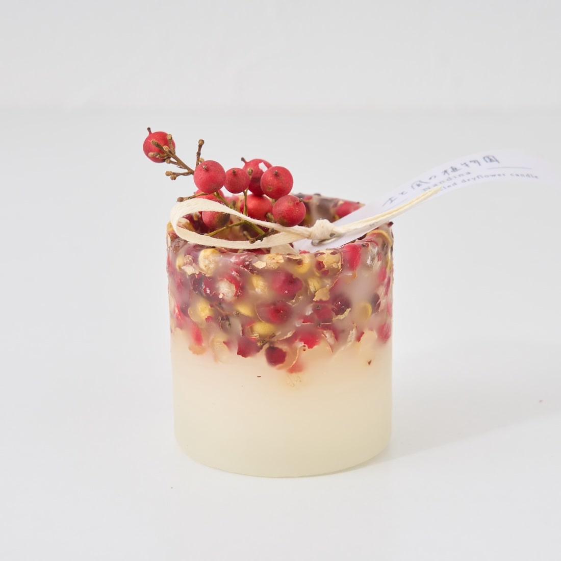 南天は実落ちしやすい植物ですが、置くだけのキャンドルなら、その心配もなく飾れますよ。
