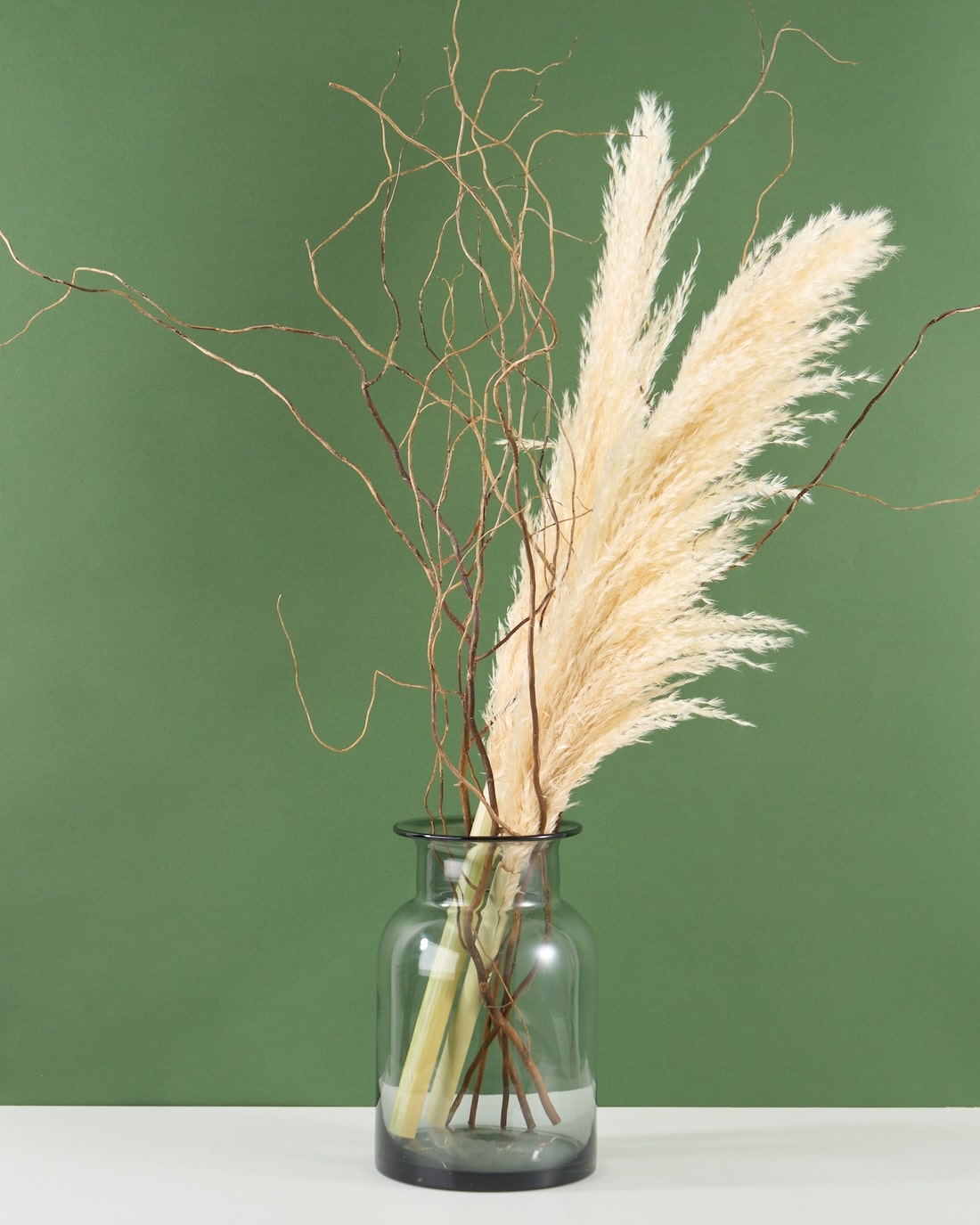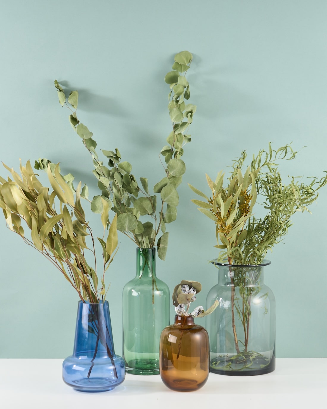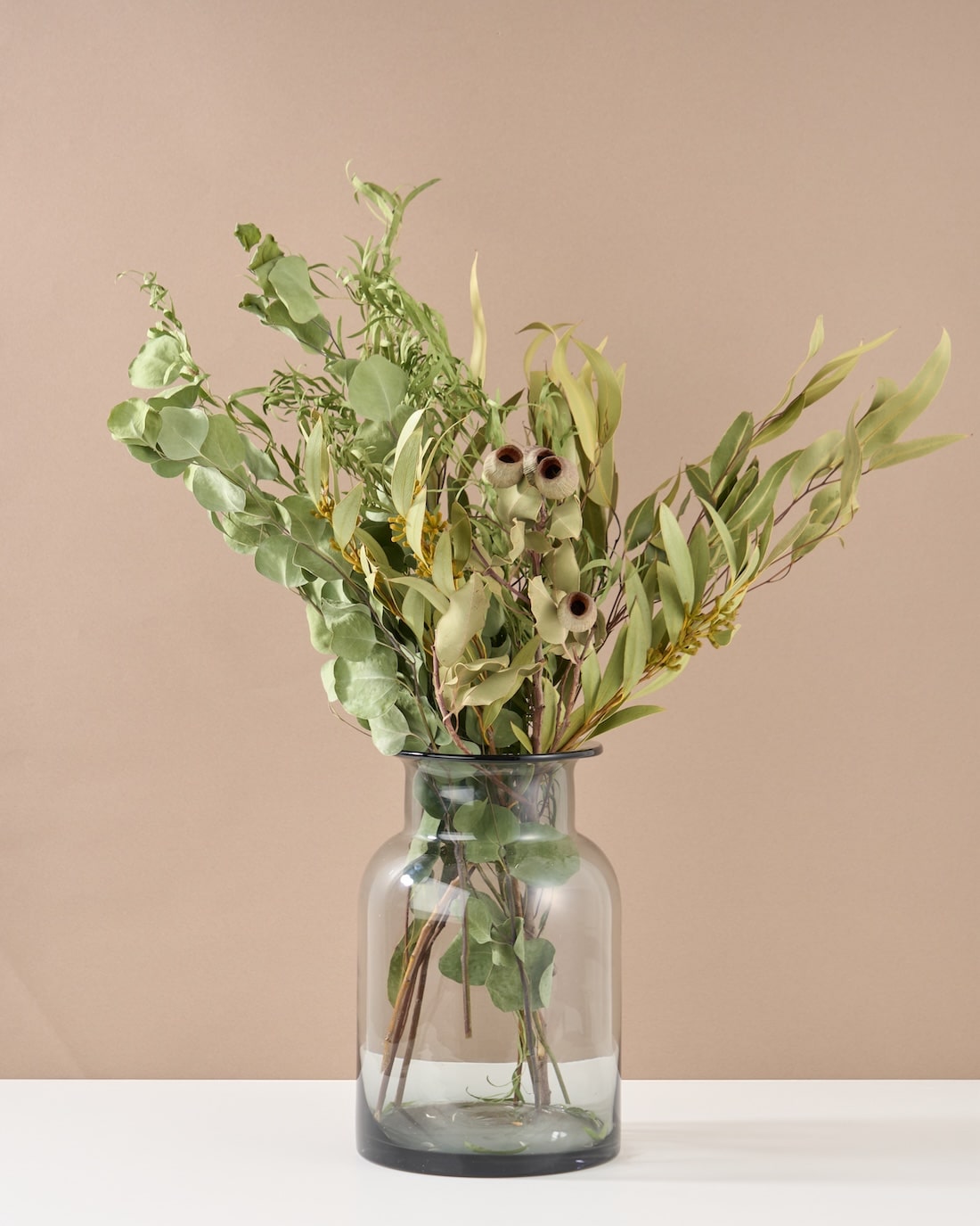 紫陽花やユーカリなどのグリーンを、ばさっと沢山飾っても、バランスが取りやすいひと品。