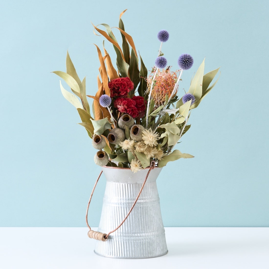 ドライフラワーと相性抜群。シャビーな風合いのアイアンポット