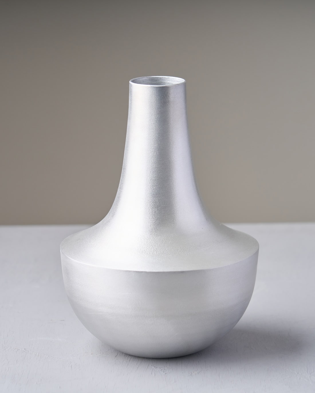 アルミ特有の無骨な質感と、ヴィンテージライクな風合いが魅力的なフラワーポット。置いているだけでも絵になり、インテリアの一部としても楽しめます。鉄と違って錆びにくく、ドライフラワーはもちろん、生花も飾って楽しめます。