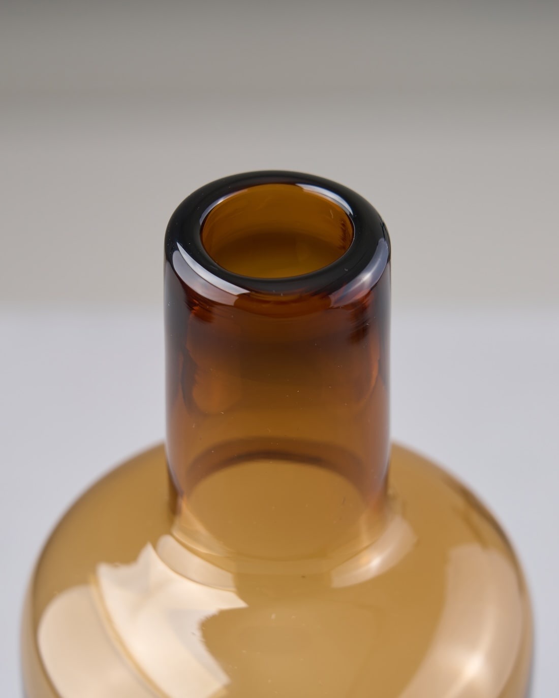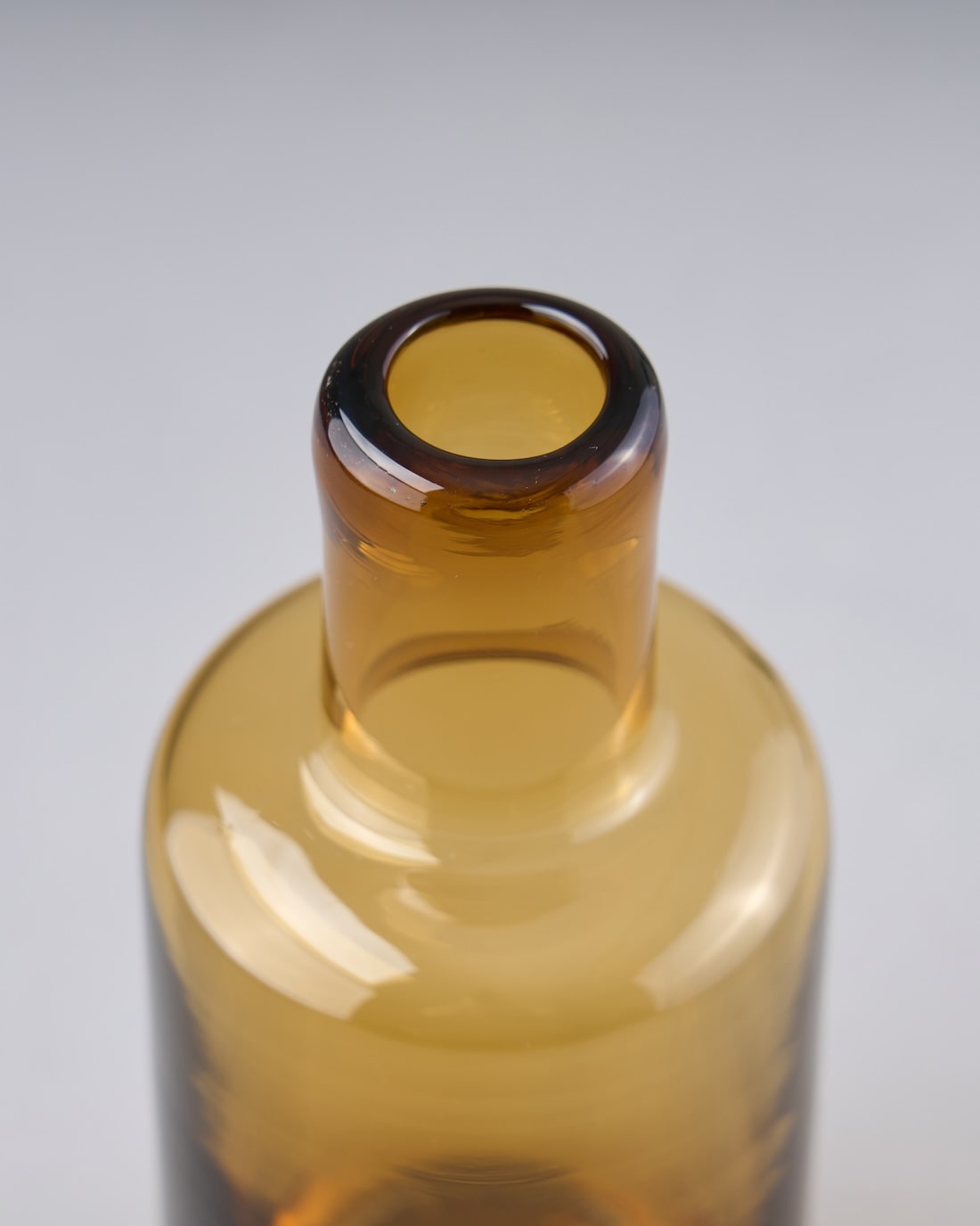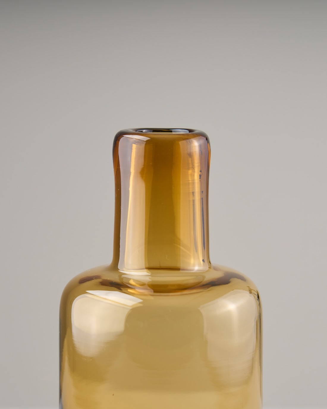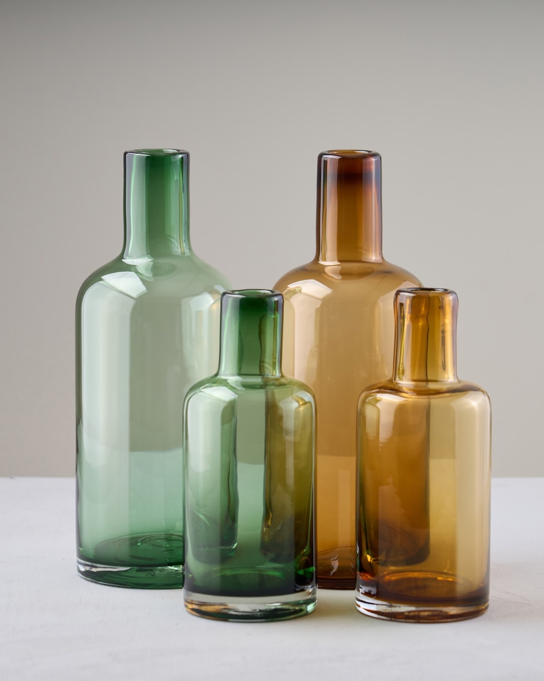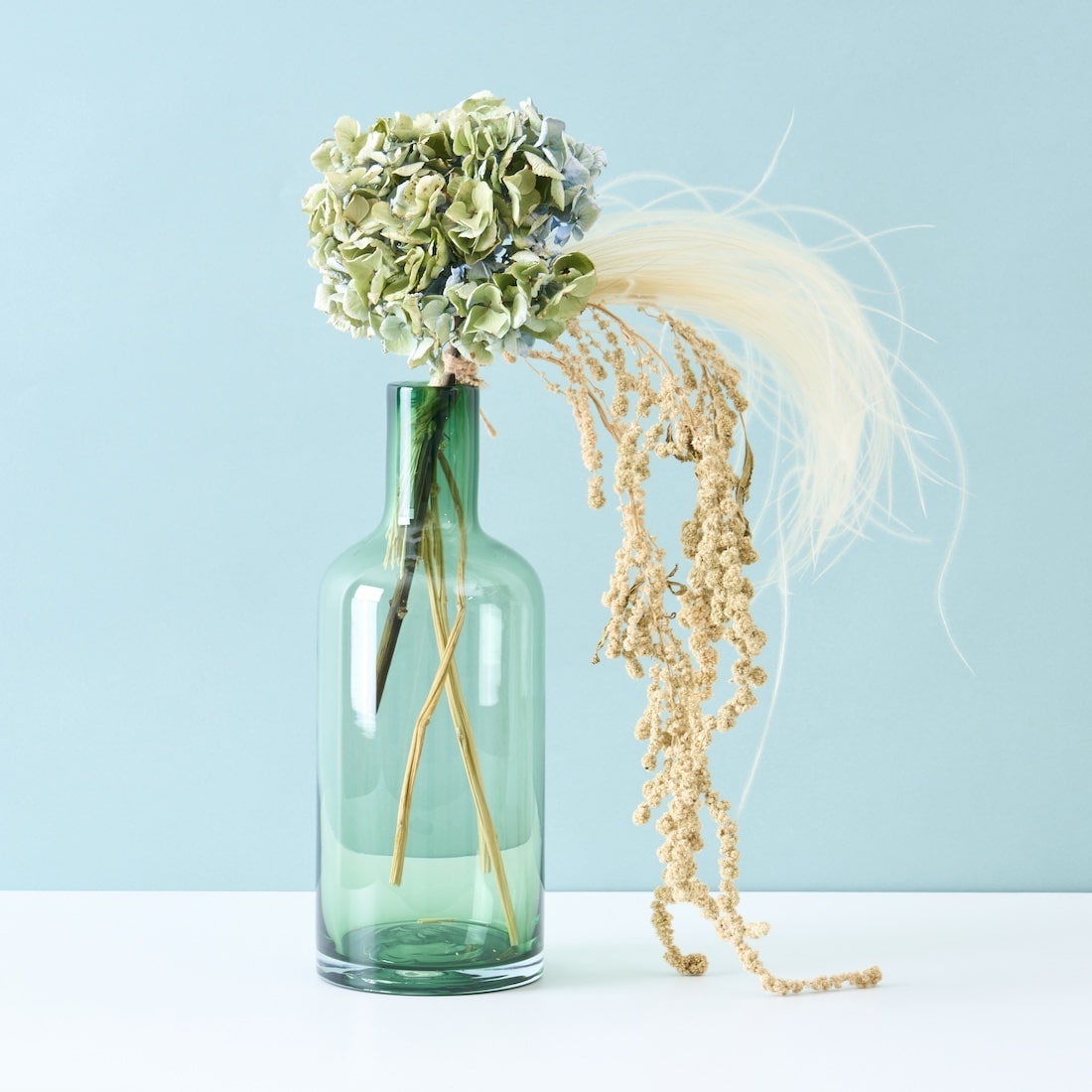 落ち着いた色合いが魅力のグリーンのフラワーベース。どんなインテリアにもマッチしやすい、シンプルでタイムレスなデザインが特徴です。植物の色彩を一層引き立て、空間に深みが生まれます。 職人が型吹きで仕上げており、ひとつひとつ表情が異なるのも魅力。
