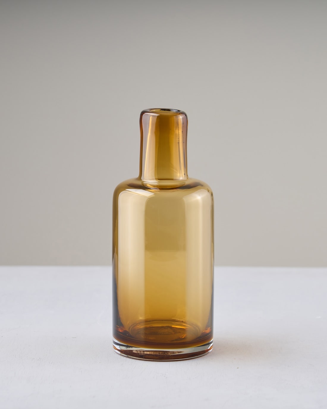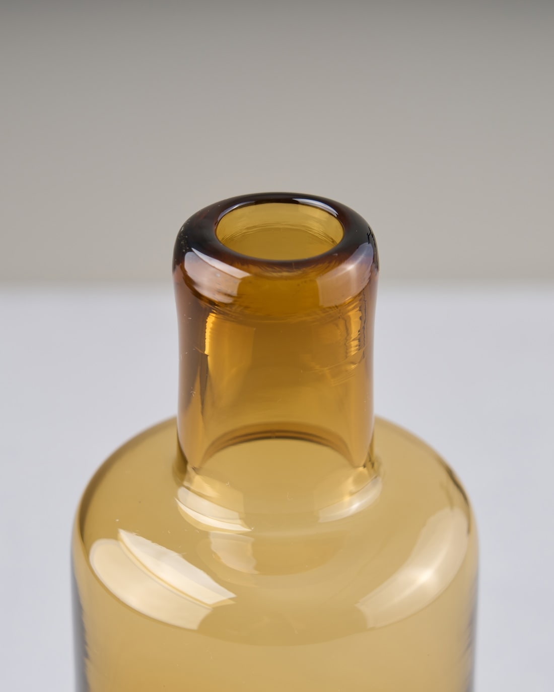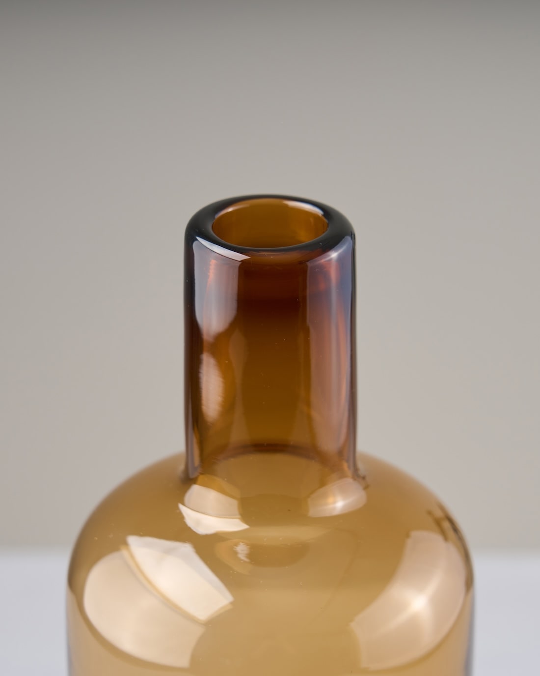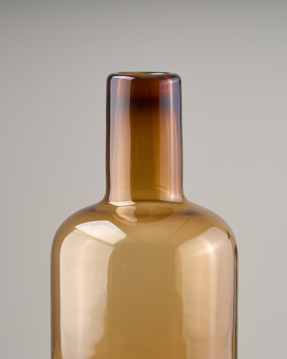 落ち着いた色合いが魅力のグリーンのフラワーベース。どんなインテリアにもマッチしやすい、シンプルでタイムレスなデザインが特徴です。植物の色彩を一層引き立て、空間に深みが生まれます。 職人が型吹きで仕上げており、ひとつひとつ表情が異なるのも魅力。