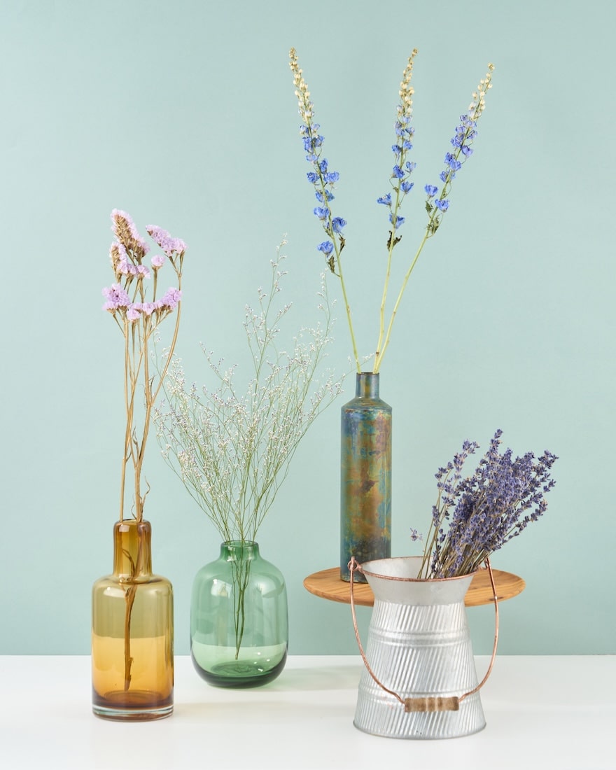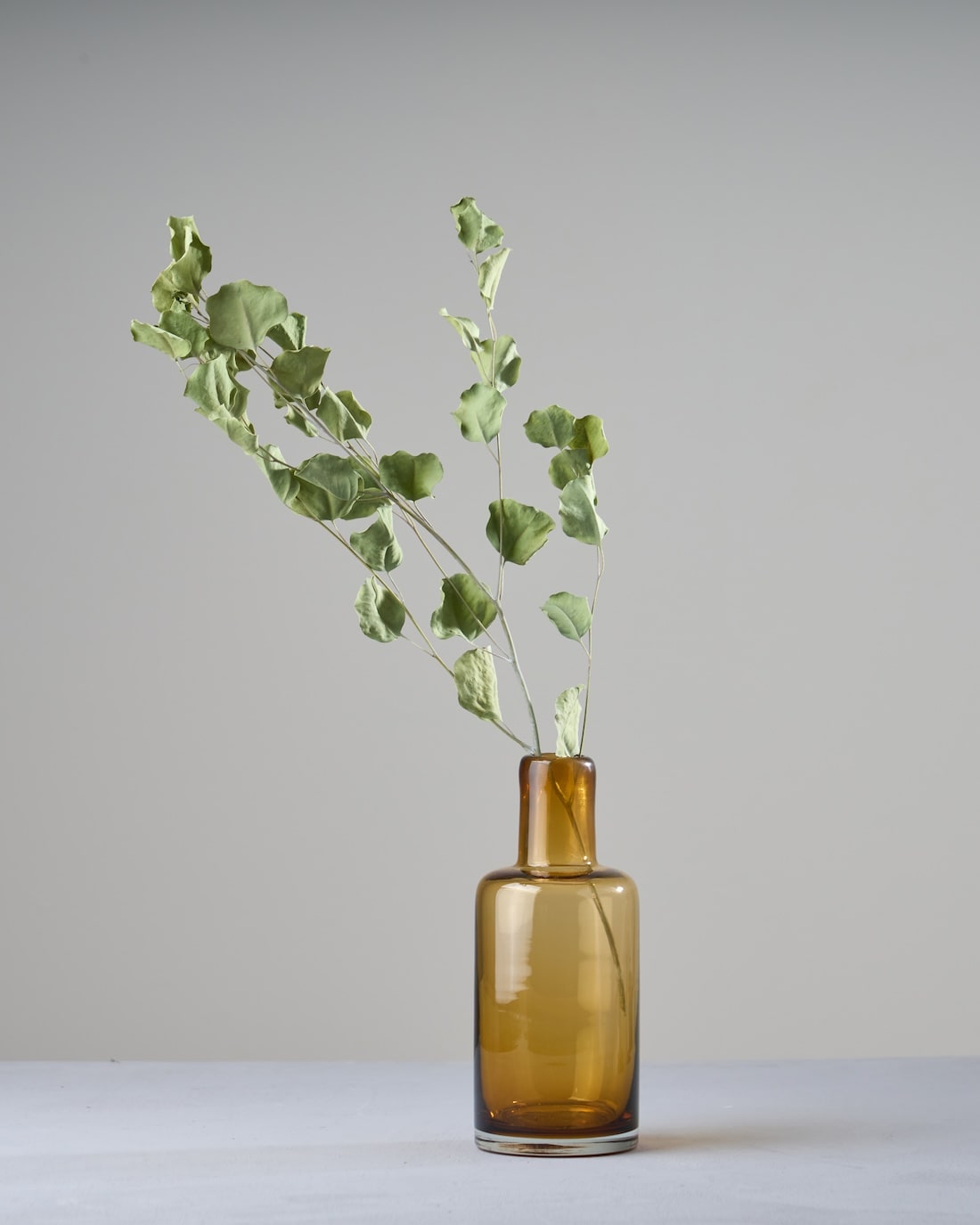 厚みのあるガラスでどっしりと重みがあるので重量感ある枝ものや大ぶりな未のついたドライフラワーも飾りやすいです。