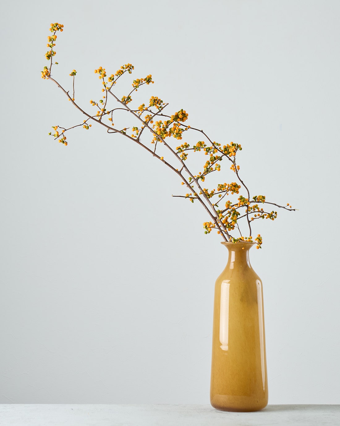 ツルウメモドキなど、個性的な枝ものとも相性抜群。