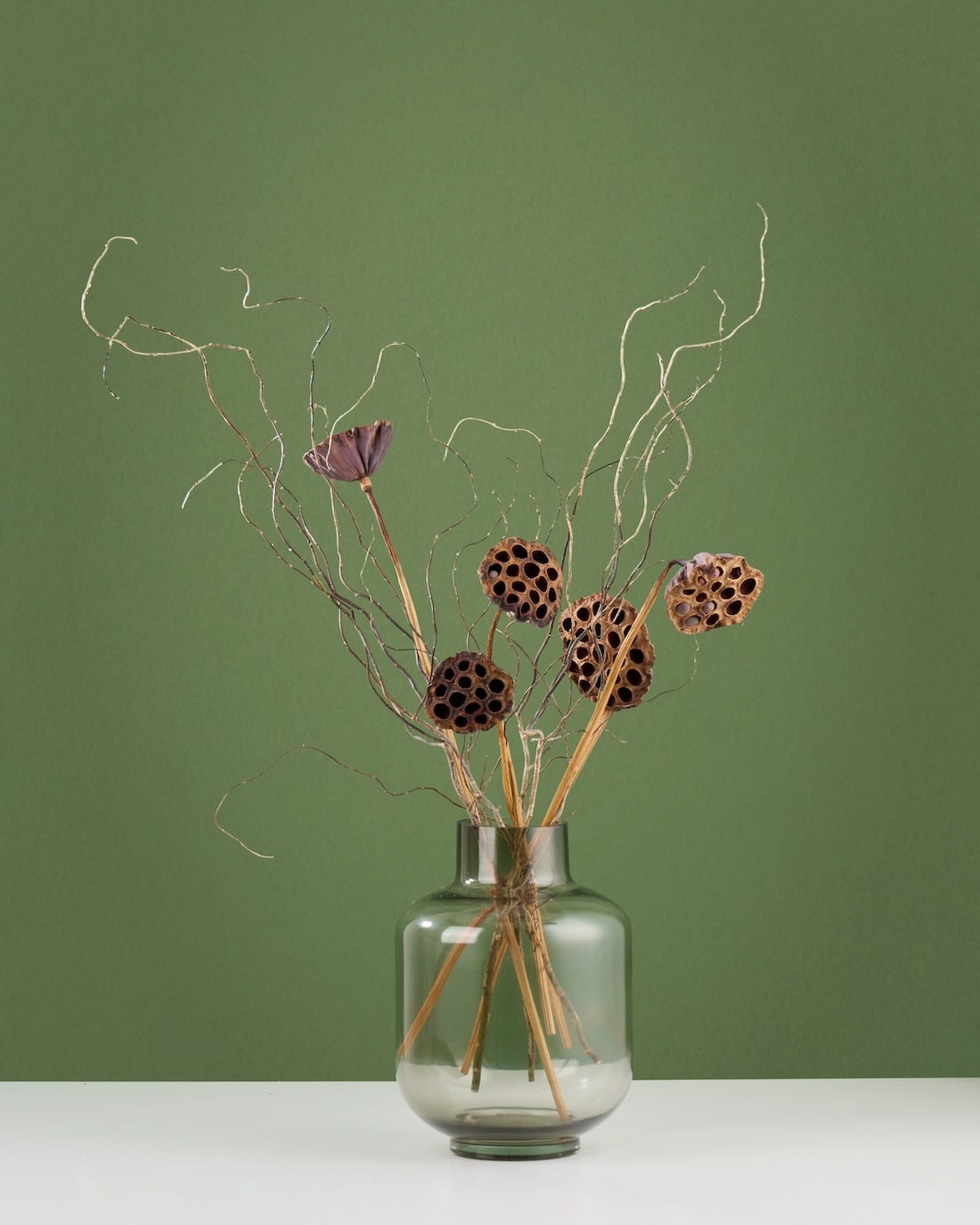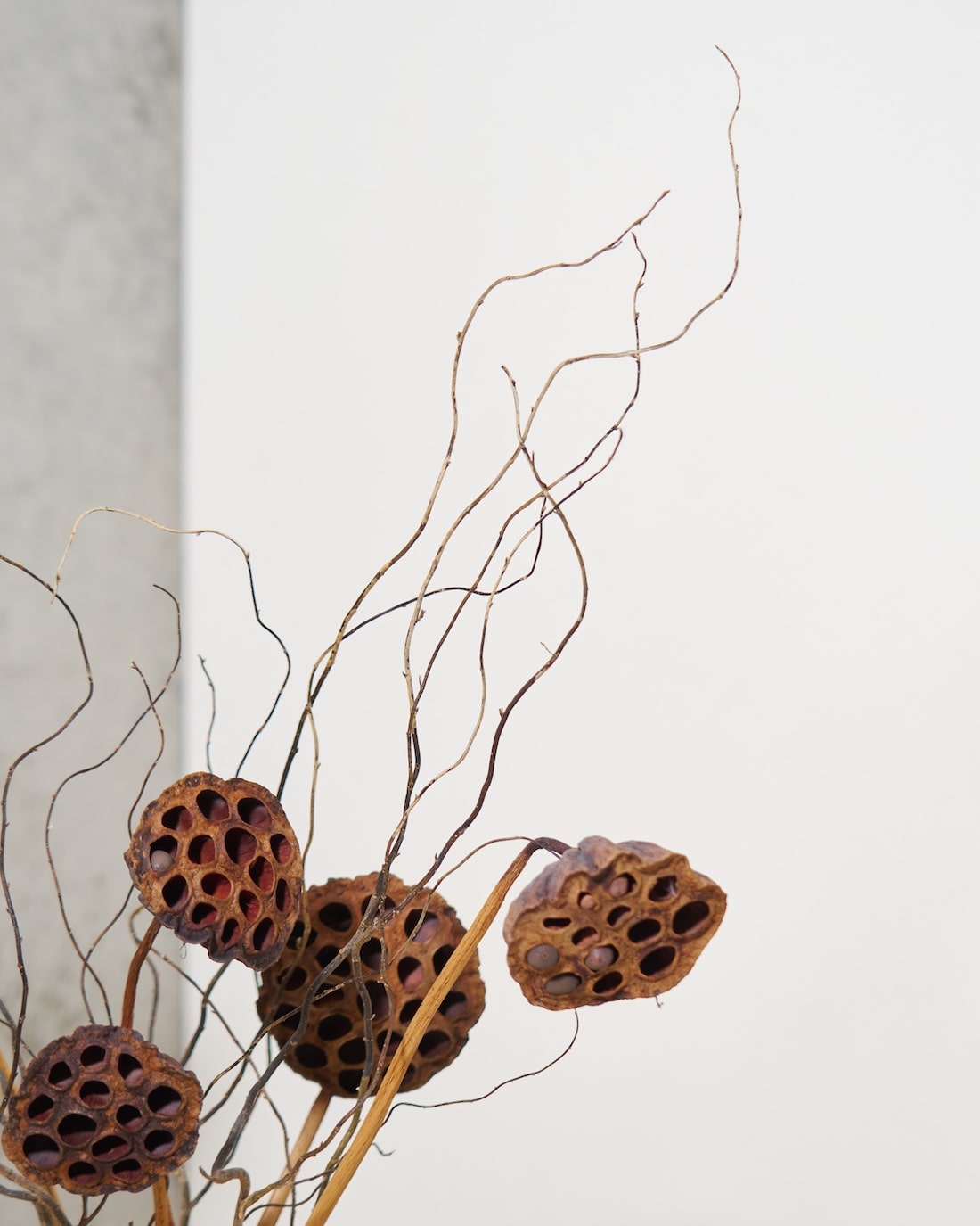 そのまま飾るだけでサマになる、ドライフラワーのセットが登場。当店人気ナンバーワンの雲竜柳と、ハスのドライフラワーの組み合わせです。シックな彩りだけど、しっかり華やか。凜とした雰囲気で、和室などのインテリアにもぴったりです。