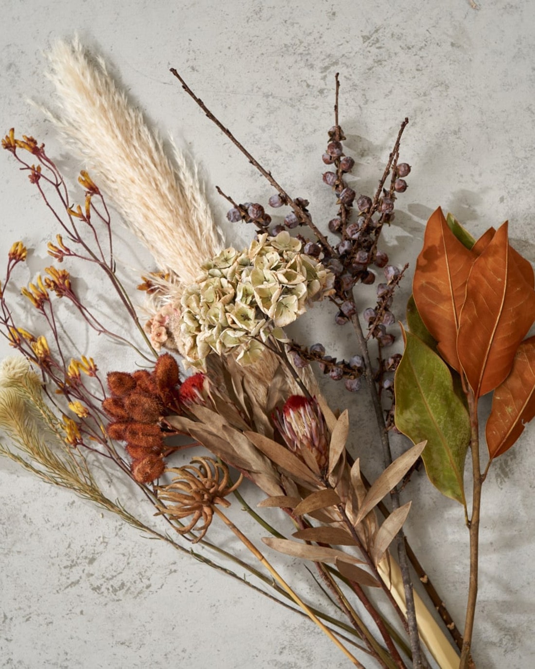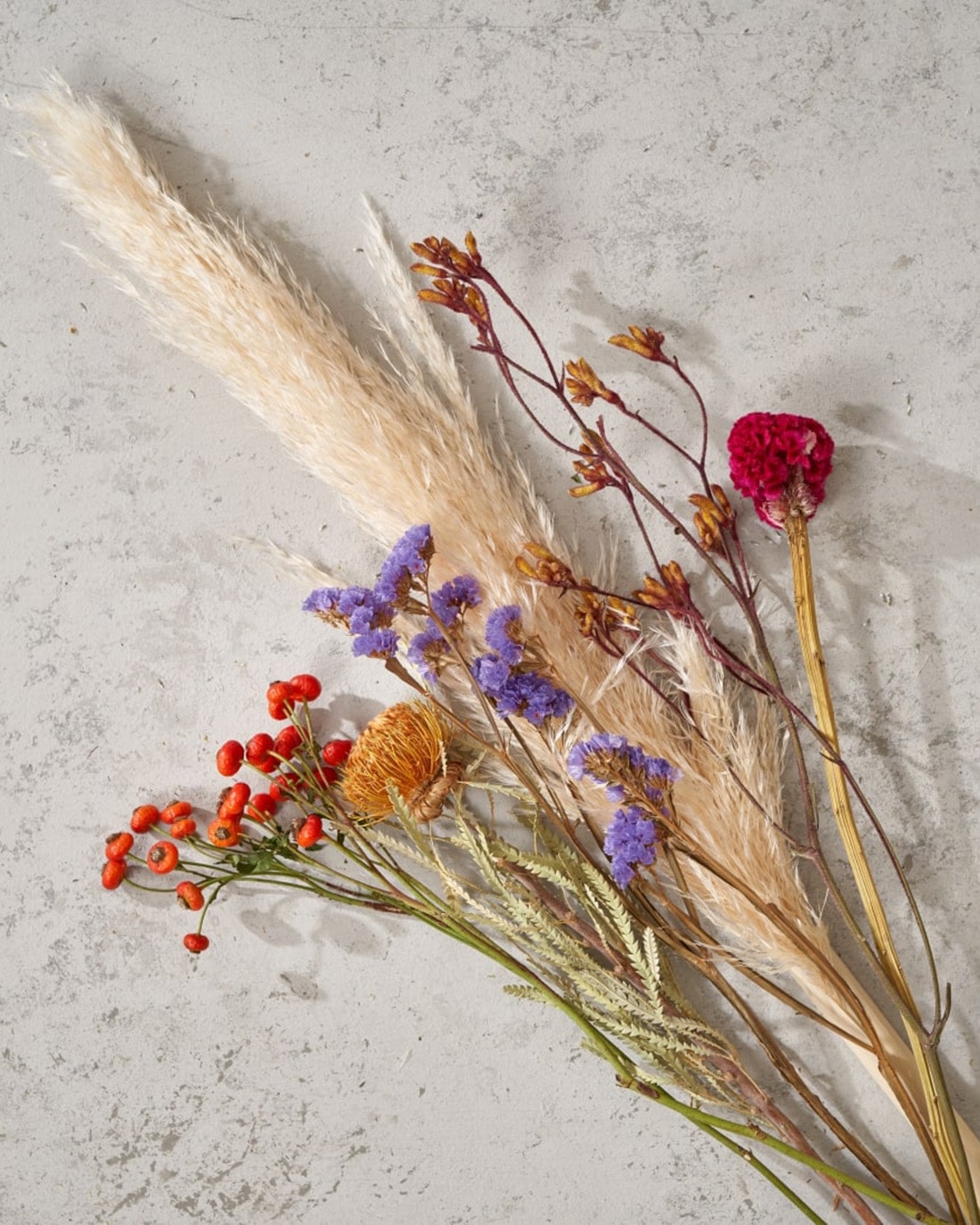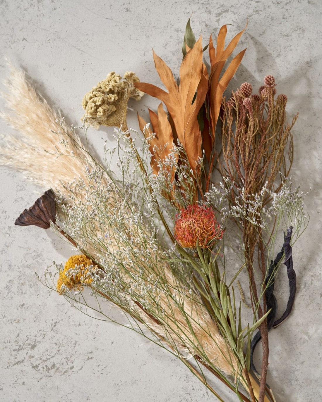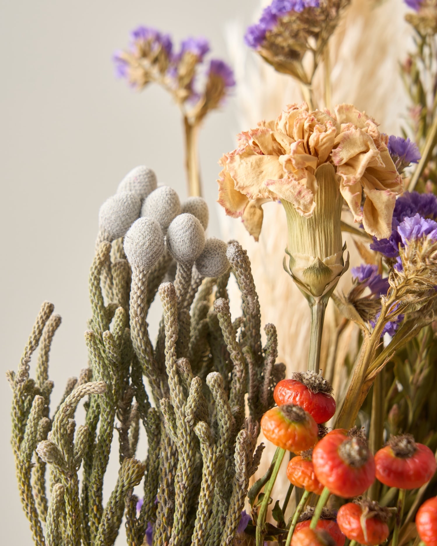 ふわふわなもの、シワシワなものなど、ドライフラワーの質感の違いも楽しめるセットです。
