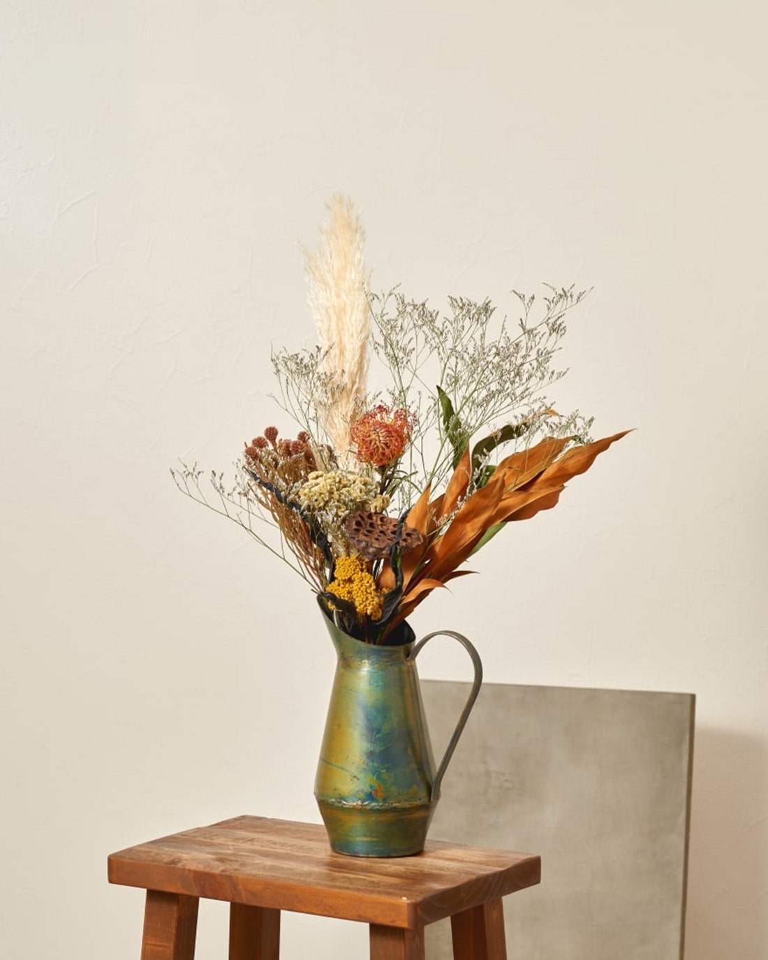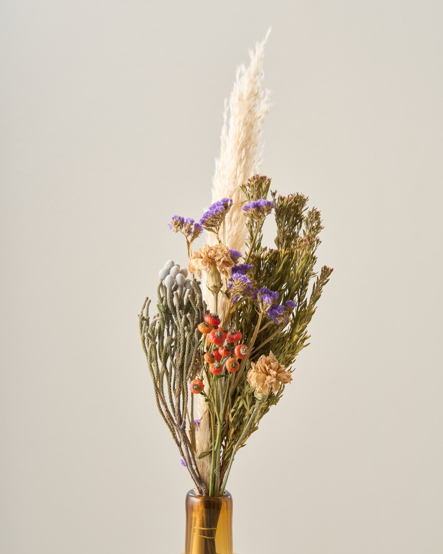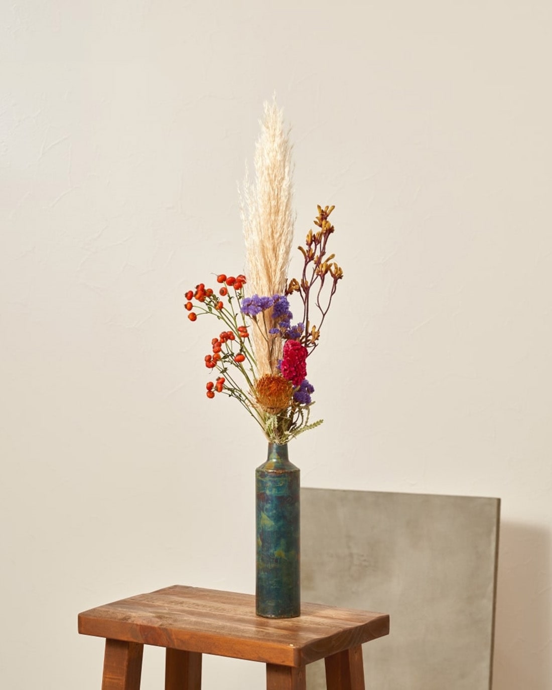 Mセットは、個性的なワイルドフラワーや、動きのあるドライフラワーを組み合わせてお届け。