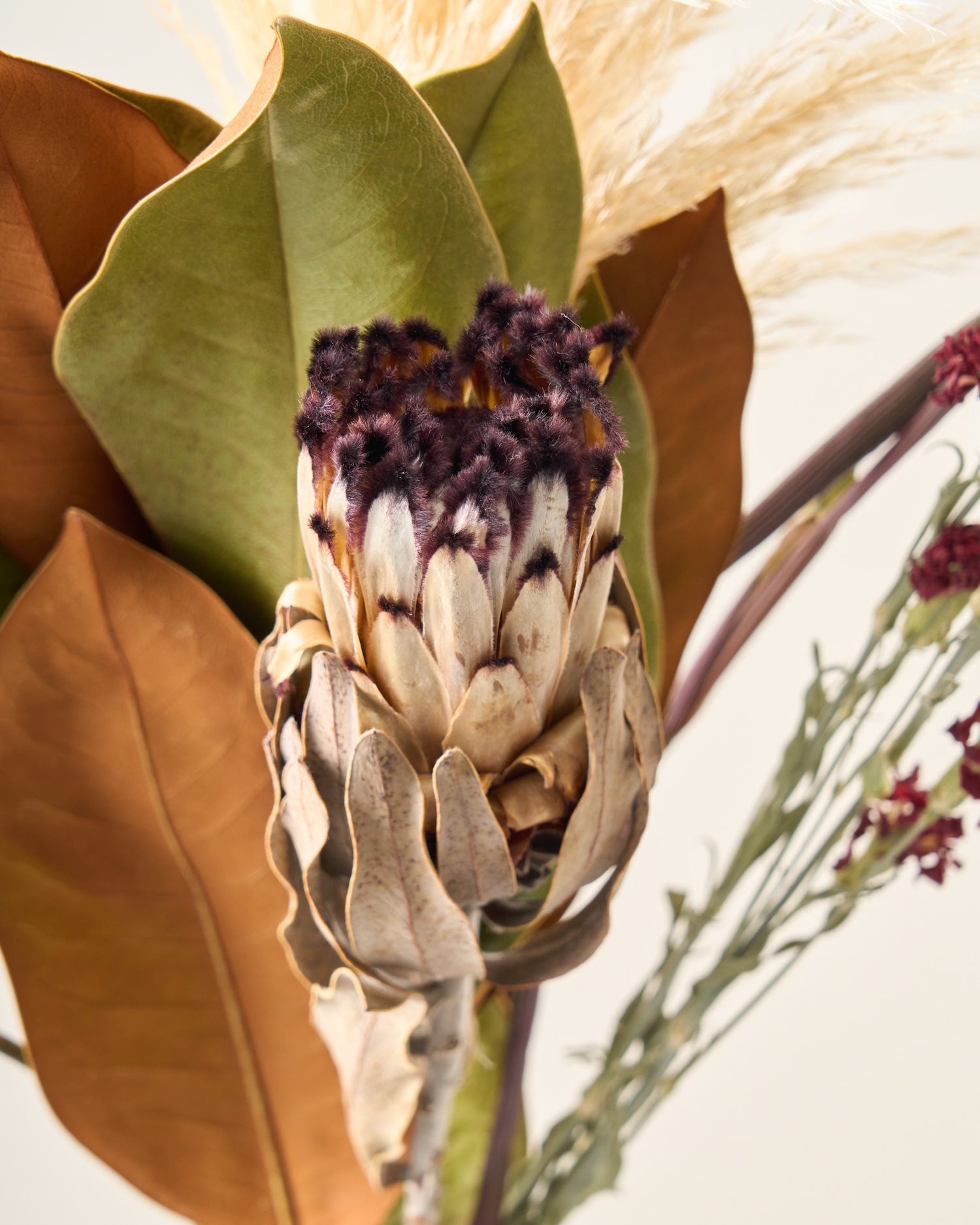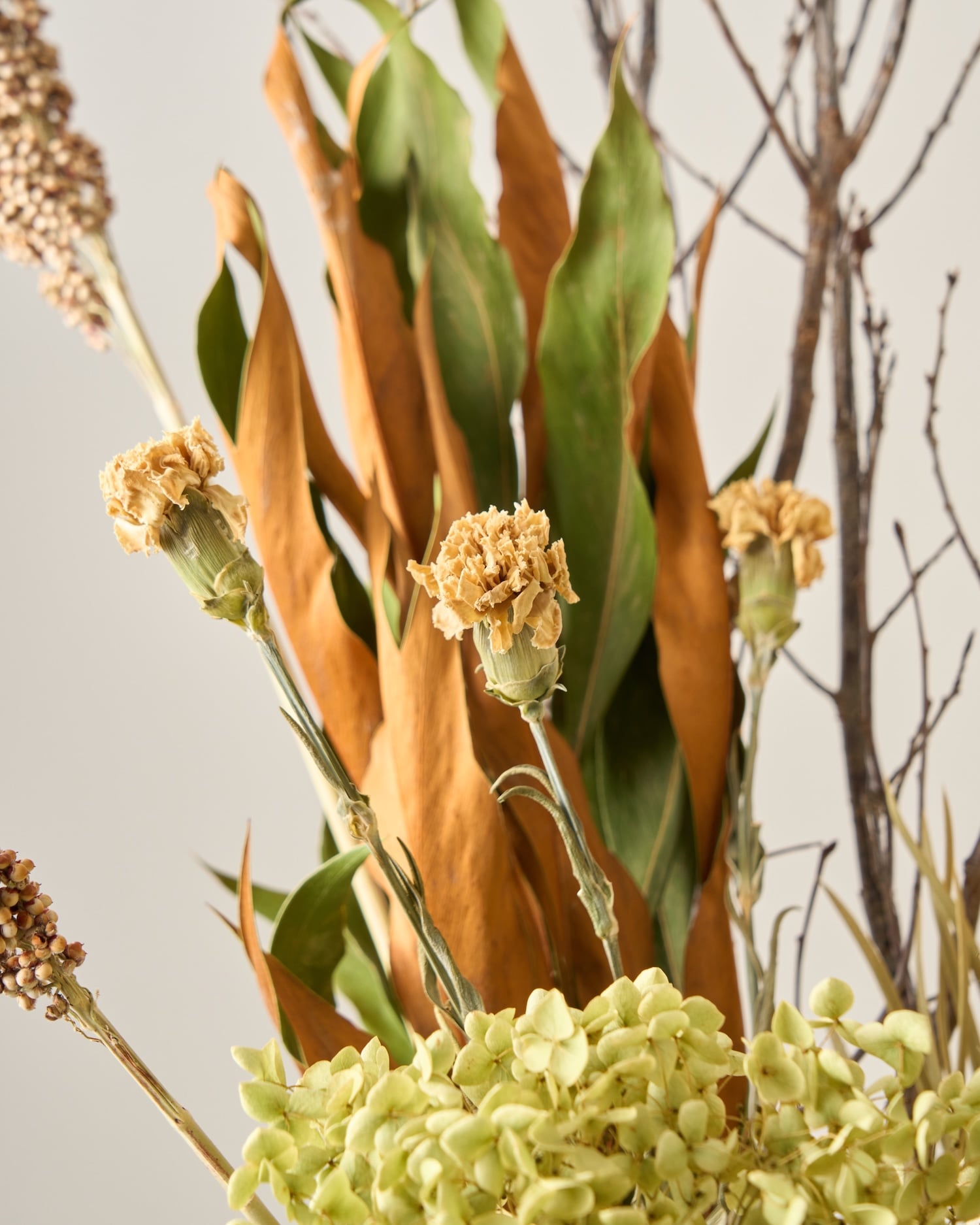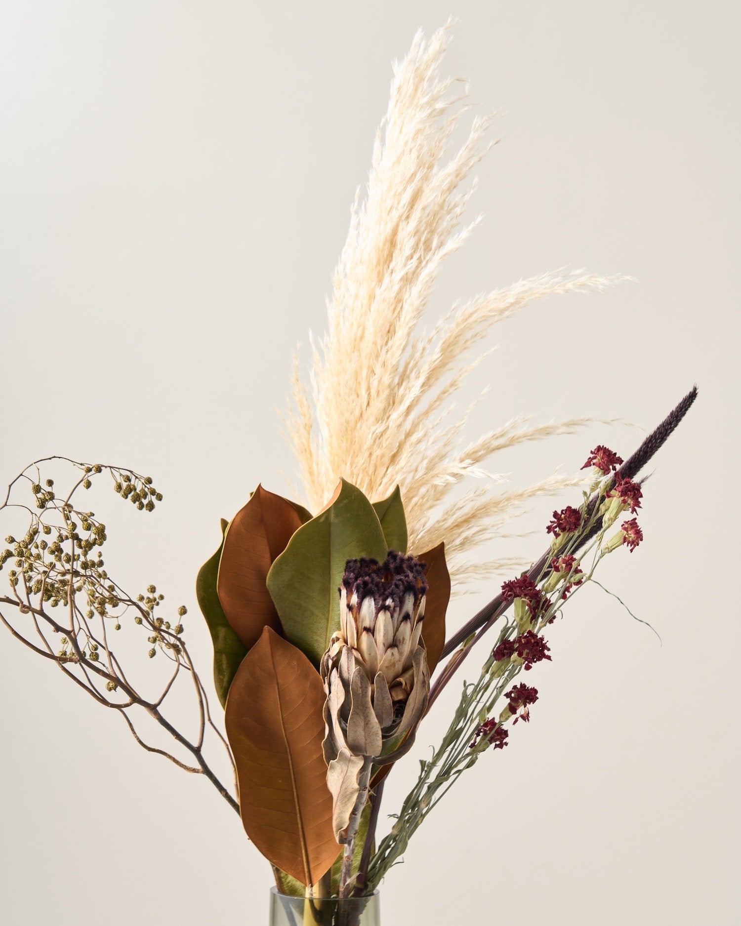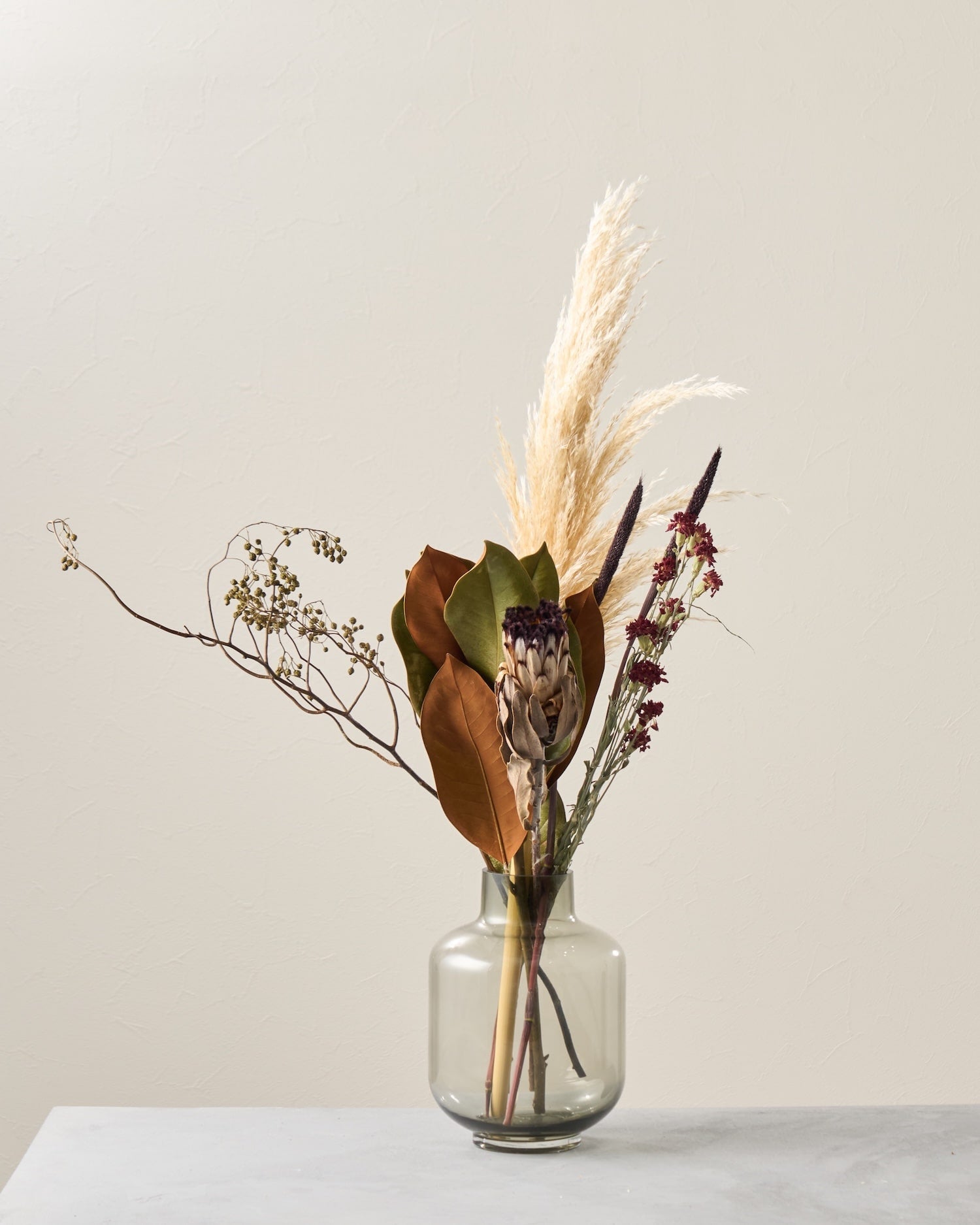 Mセットは、個性的なワイルドフラワーや、動きのあるドライフラワーを組み合わせてお届け。