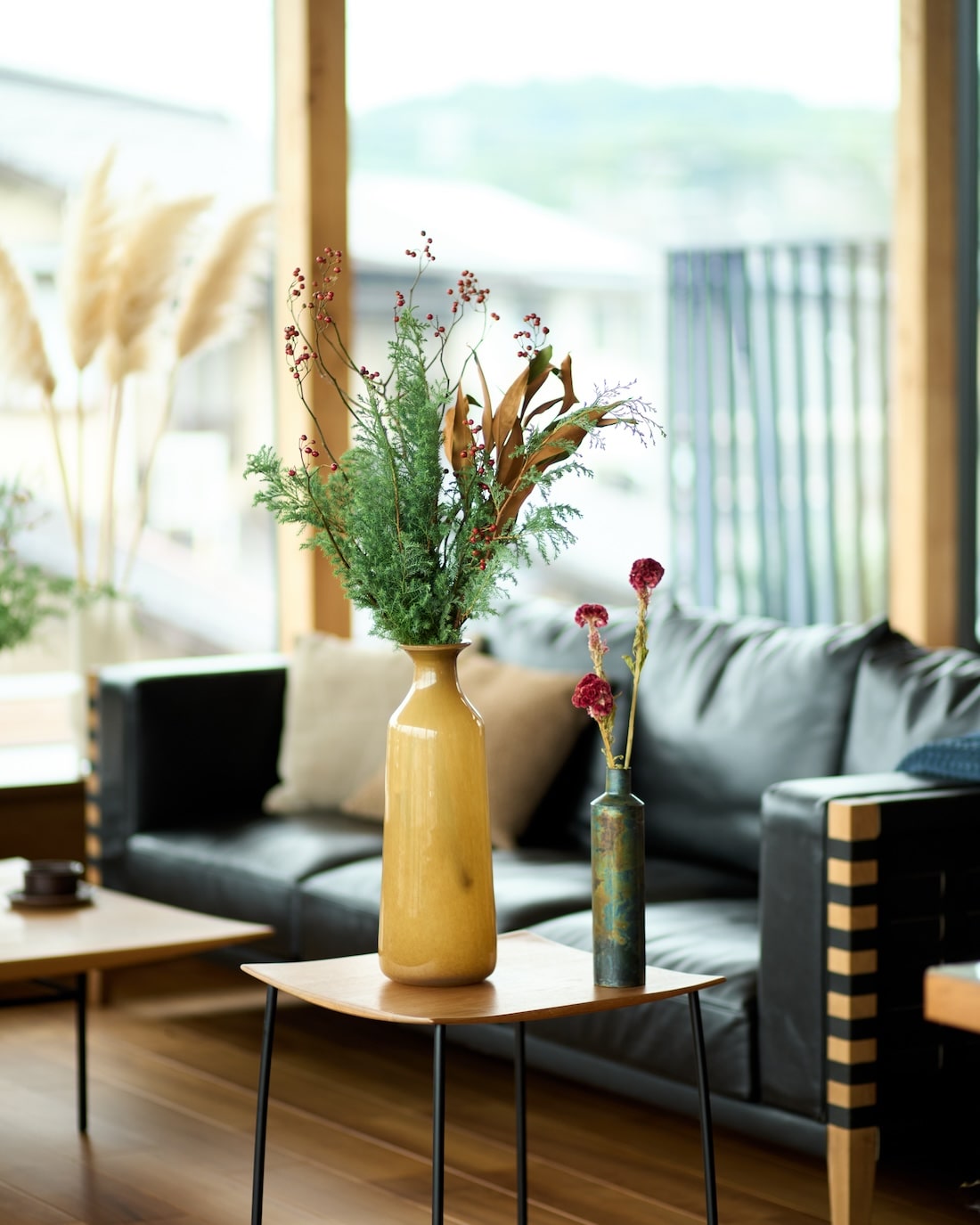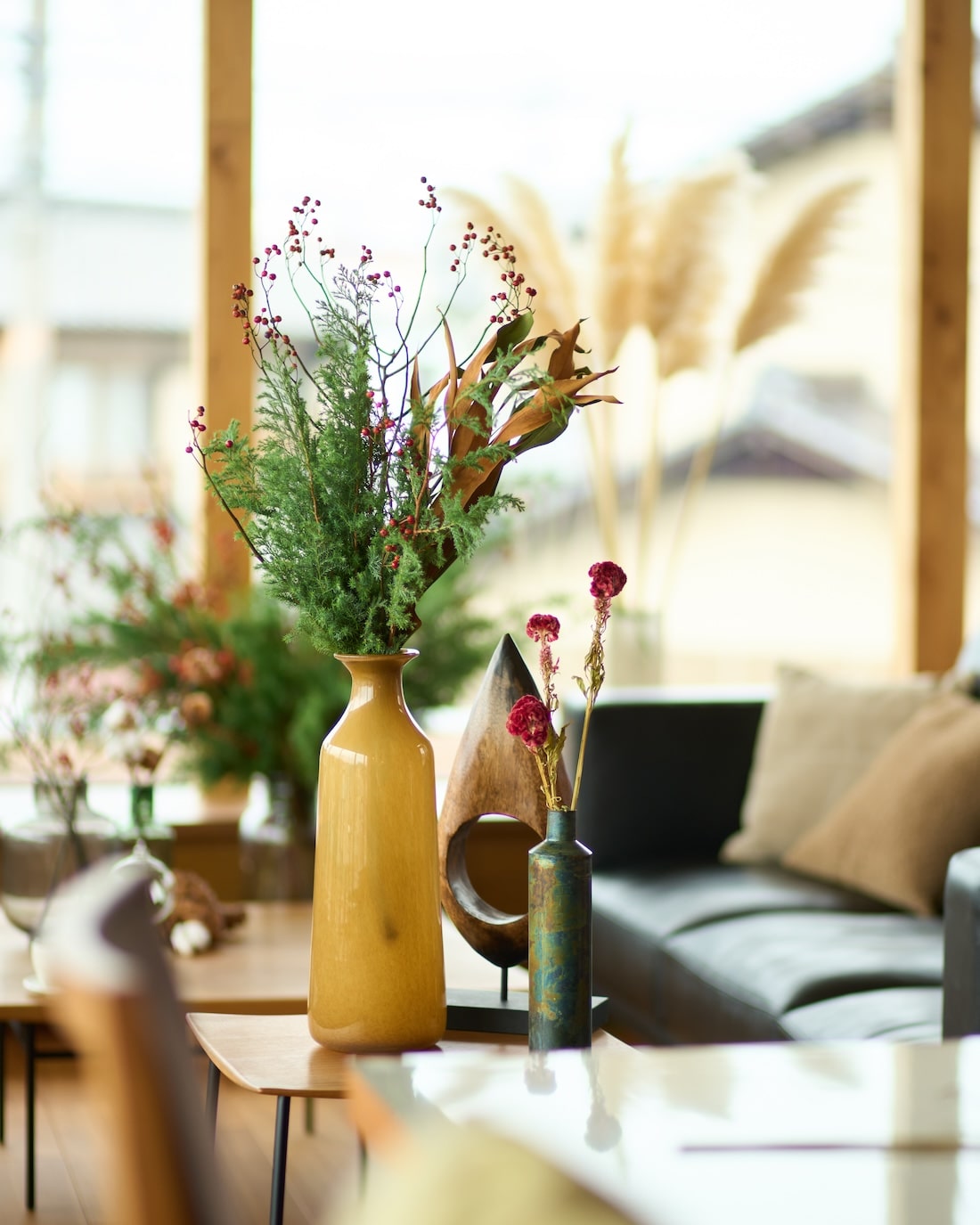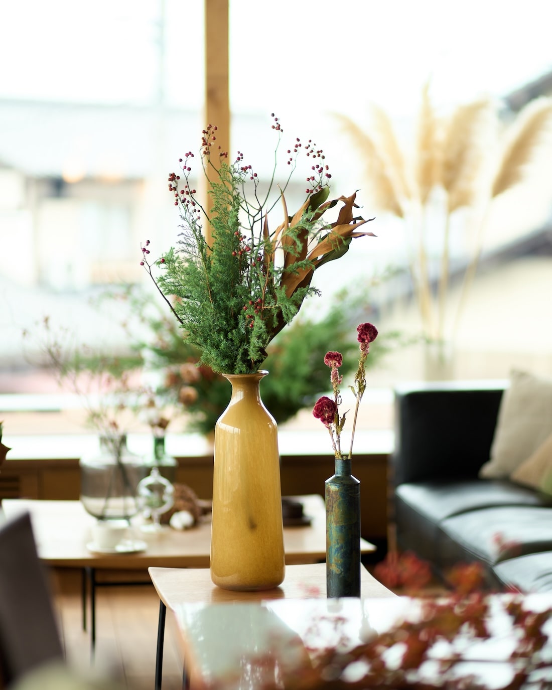 ▲インテリアに映える、ミルキーガラスベース アンバーを使用(直径14.5㎝ × 高さ40.5㎝)