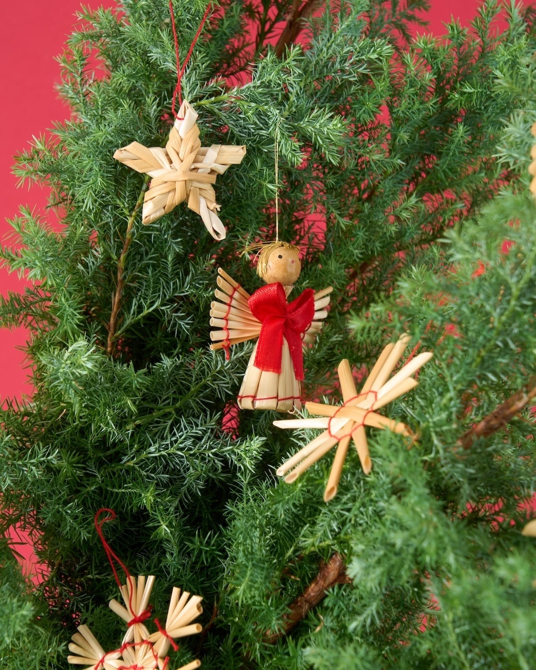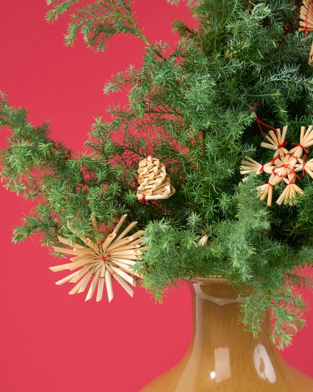 サツマ杉とストローオーナメントを組み合わせた、クリスマスにぴったりなセットをご用意しました。