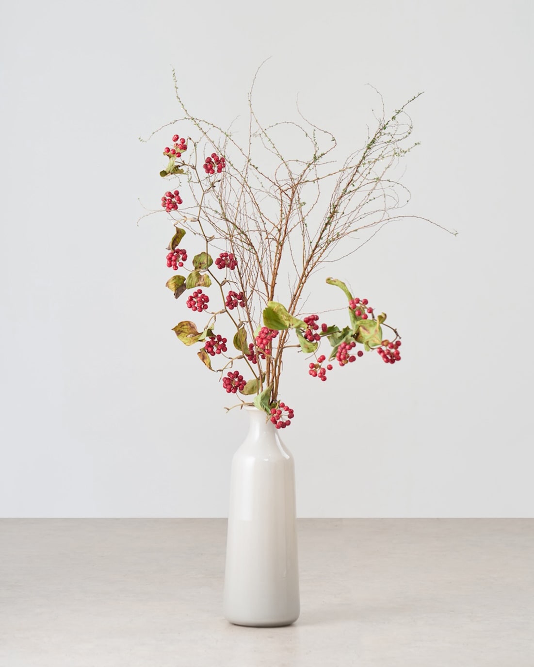冬のインテリアによく似合う彩りを、BIGサイズで飾りたい方へ。しとやかな佇まいの雪柳と、人気の赤い実・サンキライのセットをご用意しました。